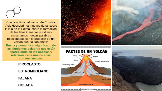 Seguimos arrancando con los BBDD de este curso 21-22. Lo que traemos para hoy (y continuaremos mañana) es un tema de máxima actualidad: el volcán en erupción de la isla de La Palma.Es importante no centrarnos en nosotros mismos, en nuestros miniproblemas del día a día, por eso os proponemos una mirada solidaria a la actualidad. Allá vamos: